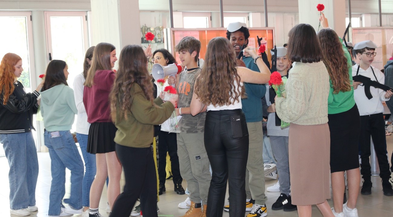 No dia 24 de abril, os alunos das turmas de 7.º ano realizaram a atividade “Comemoração do 25 de abri”, em forma de homenagem aos capitães de abril, por forma a lembrar as conquistas da revolução dos cravos e a importância da mesma na vida de todo um povo.